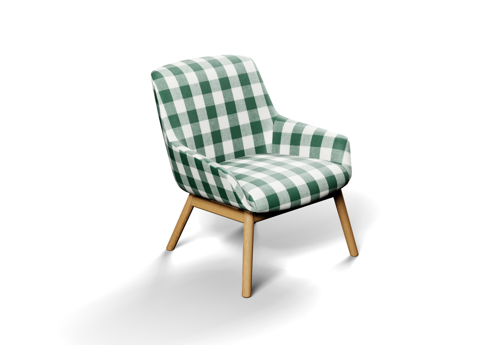 For this example, we set up a test scene on the colormass platform. It consists of a chair and uses a wool-like base material. The *Overlay Material Color* node takes care of replacing the color information of this material and scales your pattern to the desired width and height.